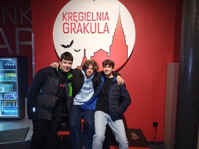 Uczniowie klasy VIII w Kręgielni GRAKULA
