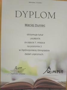 I miejsce Macieja Duńca w Konkursie Recytatorskim...