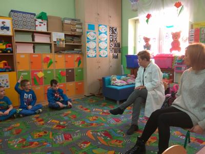 Wizyta pani pielęgniarki w oddziale przedszkolnym.